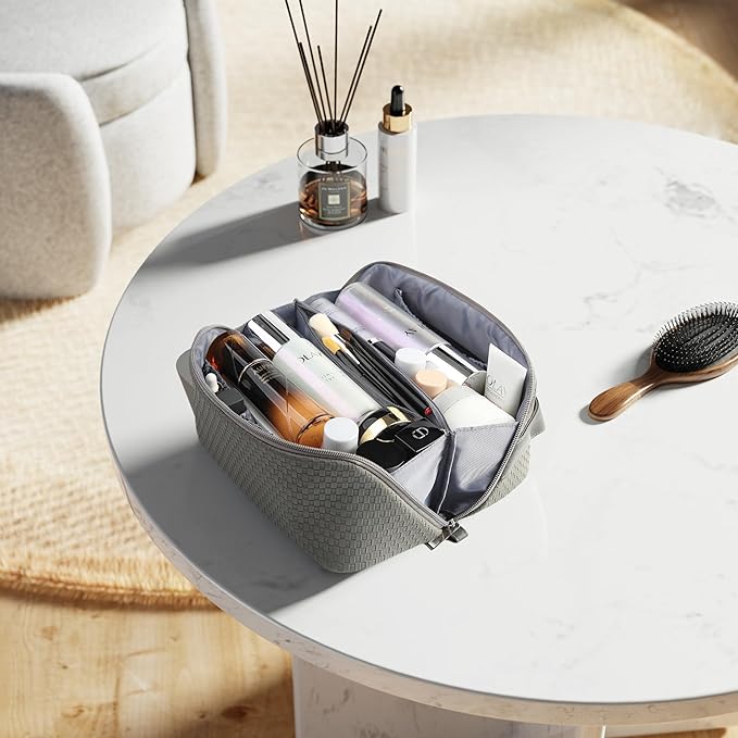 - Large Capacity & Smart Organization-With generous dimensions of 10.23" x 5.1" x 5.1", this makeup bag easily holds your full-size skincare, makeup brushes, palettes, toiletries, and more. Inner pockets and compartments keep everything neat, visible, and easy to access—no more messy digging!