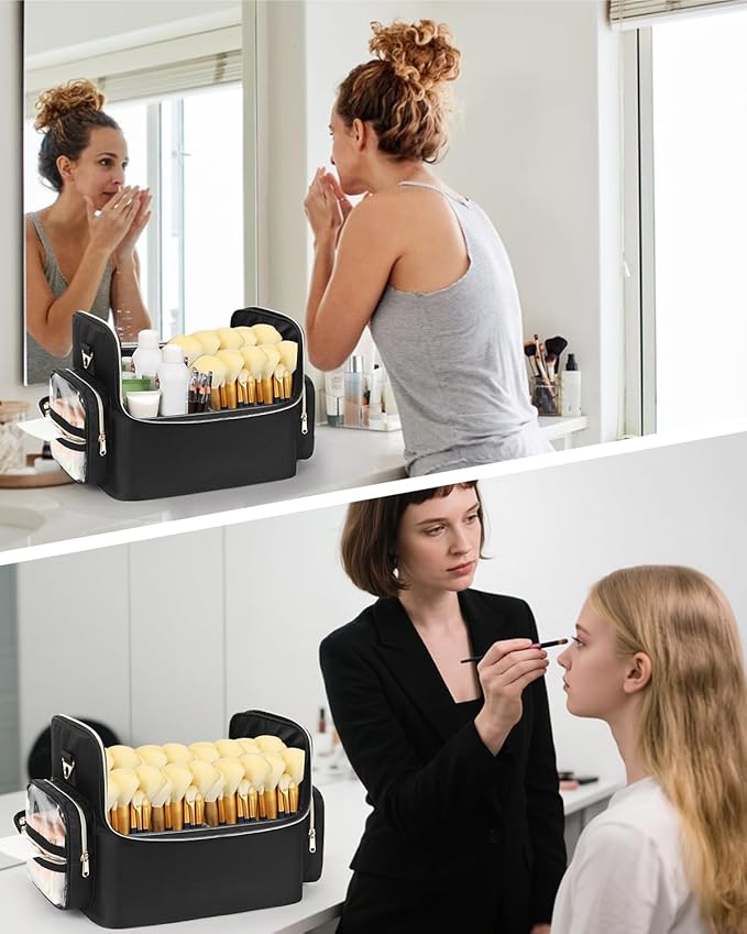 Makeup Brush Case Stand-up Cosmetic Bag Extra Large Makeup Artist Bag Travel Cosmetic Brush Holder Artist Storage Bag Organizer Box with Adjustable Dividers (07-Black(XXX Large))