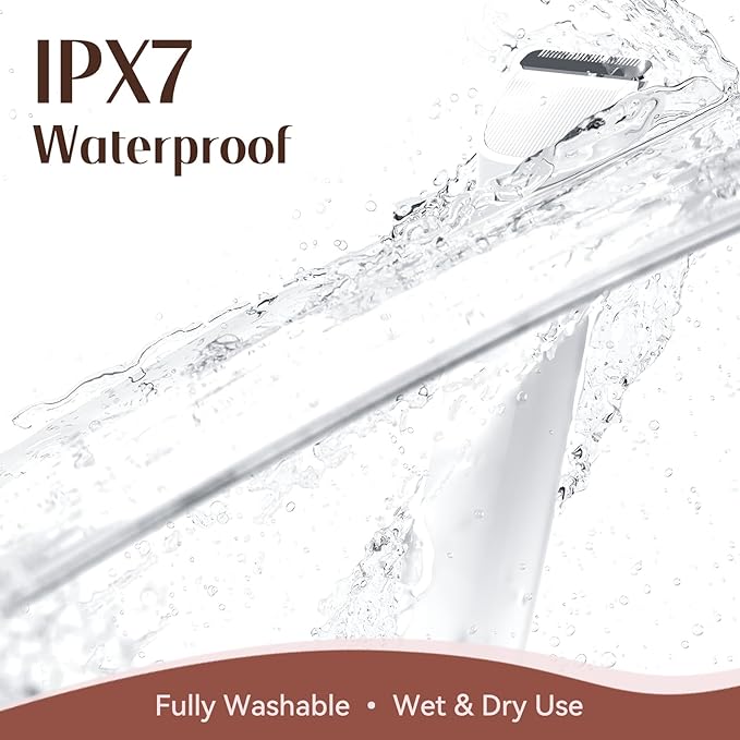 - π§ IPX7 Waterproof & Washable Heads: Designed for both wet and dry use, this bikini trimmer for women is fully IPX7 waterproof. Shave in the shower or clean it directly under running water without worry. The detachable, washable heads make it easy to maintain hygiene, while providing a safe and smooth experience every time.