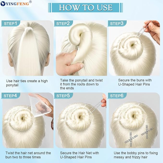 510PCS Silve Bobby Pins Hair Pins Kit with Hair Net, YINGFENG Includes 100 Bobby Pins for Women, 100 U-Shaped Buns Hair Clips, 300 Hair Bands and 10 White Hair Nets, for Gray Hair