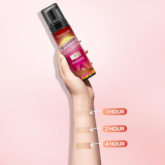 - Natural Sun-Kissed Glow: Become Your Sun-Kissed Goddess! Our self tanner mousse blends DHA with nourishing plant-based extracts to give you sun-kissed glow. Free from harmful dyes and orange tones, and infused with sweet watermelon scent, self tan mousse turns tanning into a tropical treat. Included tanning mitt ensure a smooth, streak-free application, keeping your hands and clothes mess-free. Ditch the sunburn and enjoy a healthy, sunless tan for all skin types with Green Luxe!
