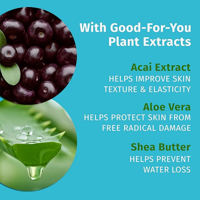 - BERRY GOOD: Helps nourish skin with acai berry extract