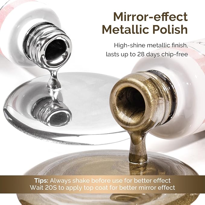MelodySusie Metallic Gel Liner Nail Art Silver Bronze Gold Set Mirror Chrome 3D Effect,for Line and Patterns of Painting,French Nail Tips,DIY Manicure Pedicure for Home DIY Salon Use 8ML 2Pcs