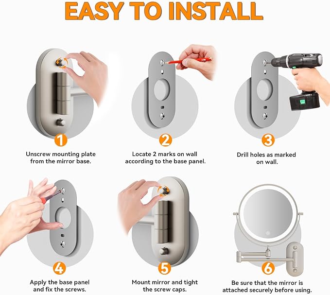 - ๐ซ๐ฏ๐ฒ๐ฌยฐ๐ฆ๐๐ถ๐๐ฒ๐น ๐๐ ๐๐ฒ๐ป๐ฑ๐ฎ๐ฏ๐น๐ฒ: It can be rotated 360ยฐ. The illuminated wall-mounted mirror with an extendable arm allows you to position your mirror for perfect viewing. Easily adjust the arm to your desired angle. When not in use, simply fold the mirror against the wall to save space.