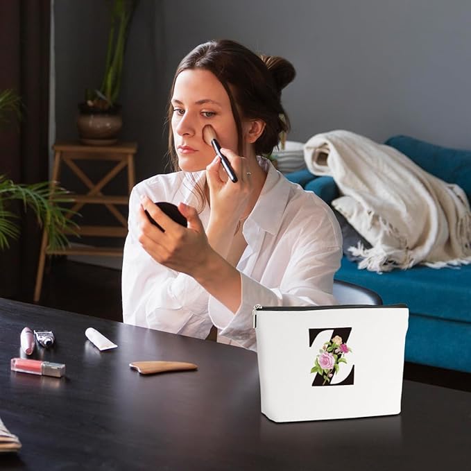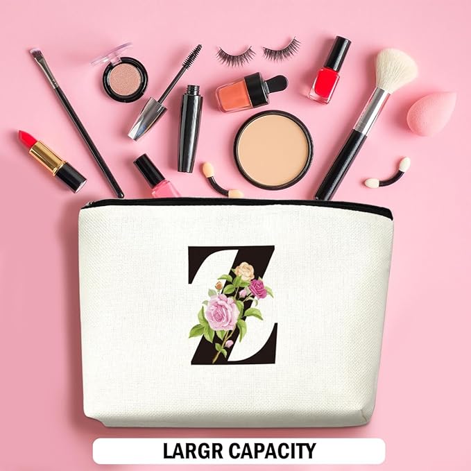 Personalized Makeup Bag, Initial Letter Z Makeup Bag for Women Rose Monogram Cosmetic Bags Toiletry Pouch, Monogrammed Gifts for Women Mom Grandma Sister Friends Thanksgiving Christmas Birthday Gift