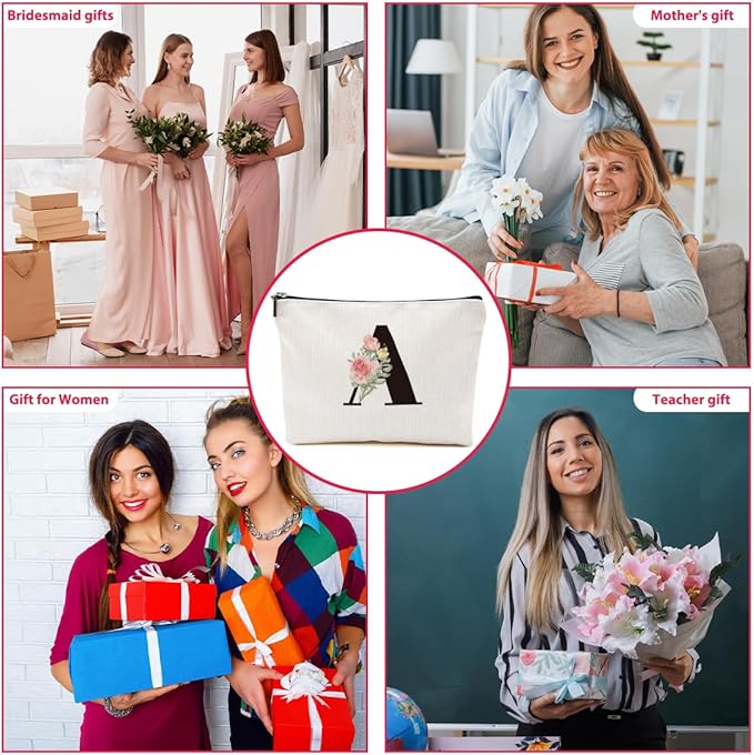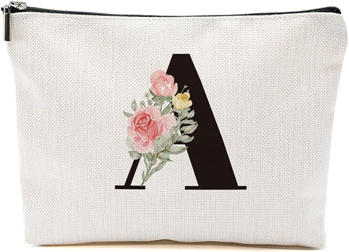 Personalized Makeup Bag, Initial Letter A Makeup Bag for Women Rose Monogram Cosmetic Bags Toiletry Pouch, Monogrammed Gifts for Women Mom Grandma Sister Friends Thanksgiving Christmas Birthday Gift