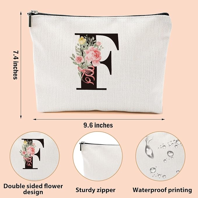 Personalized Makeup Bag, Initial Letter F Makeup Bag for Women Rose Monogram Cosmetic Bags Toiletry Pouch, Monogrammed Gifts for Women Mom Grandma Sister Friends Thanksgiving Christmas Birthday Gift