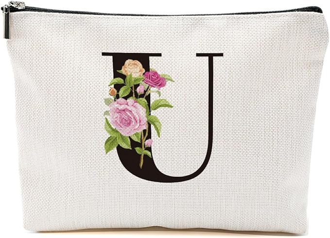 Personalized Makeup Bag, Initial Letter U Makeup Bag for Women Rose Monogram Cosmetic Bags Toiletry Pouch, Monogrammed Gifts for Women Mom Grandma Sister Friends Thanksgiving Christmas Birthday Gift