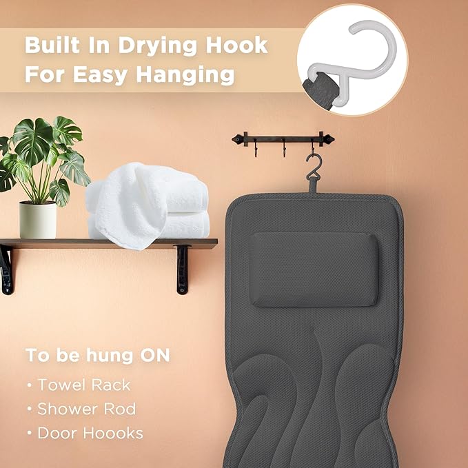 Full Body Bath Pillow for Tub, Extra Thick 4D Air Mesh & Quick-Dry Spa Pillow for Head Neck and Beck Support, Non-Slip Suction Cups Fits All Tubs - Luxury Bath Accessories for Relaxation, Grey (Grey)