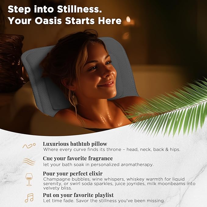 - Breathable 4D Air Mesh & Quick-Dry Fabric - Featuring advanced 4D air mesh technology, this bathtub cushion allows water to flow through instantly and dries 3x faster than traditional pillows. The ultra-soft, skin-friendly fabric feels like a cloud while preventing moisture buildup.