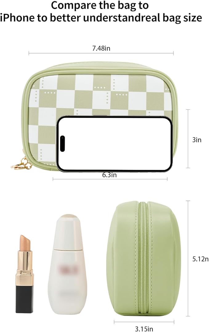RIGHT AWAY Checkered Makeup Bag for Purse,Small Cosmetic Bag Organizer for Women, Travel Make Up Pouch Waterproof Toiletry Bag Cute Makeup Case for Travel Accessories(Green Checkerboard)