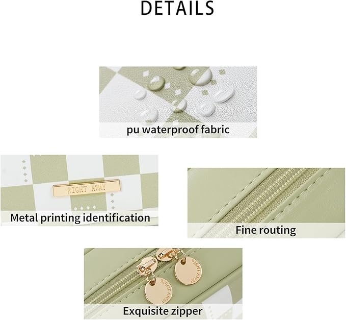 - Premium Material:Made from high-quality waterproof PU leather, this checkered makeup bag is easy to clean—just wipe with a damp cloth! Features a smooth two-way zipper for effortless opening/closing without snagging. Reinforced stitching ensures long-lasting shape retention, making it a durable cosmetic bag for everyday use