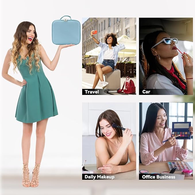 - 【Suitable For Various Scenarios】SLUMAZI travel makeup organizer with LED mirror can not only hold cosmetics, but also can put toiletries, skin care products, jewelry, electronic accessories, valuables, etc. Suitable for various scenarios, such as: home, travel, business trips, etc., is also a good gift.