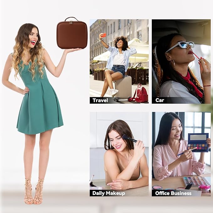 - 【Suitable For Various Scenarios】SLUMAZI travel makeup organizer with LED mirror can not only hold cosmetics, but also can put toiletries, skin care products, jewelry, electronic accessories, valuables, etc. Suitable for various scenarios, such as: home, travel, business trips, etc., is also a good gift.