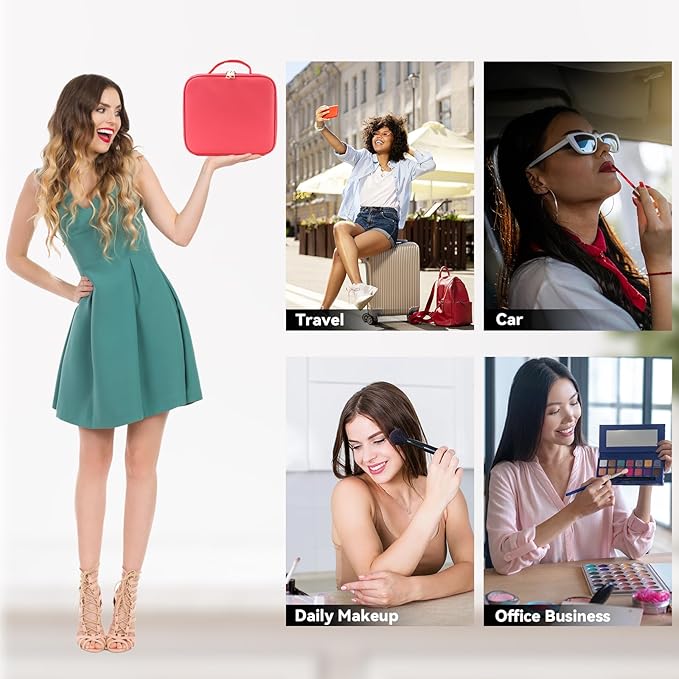 - 【Suitable For Various Scenarios】SLUMAZI travel makeup organizer with LED mirror can not only hold cosmetics, but also can put toiletries, skin care products, jewelry, electronic accessories, valuables, etc. Suitable for various scenarios, such as: home, travel, business trips, etc., is also a good gift.
