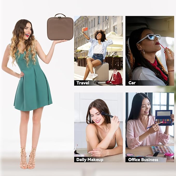- 【Suitable For Various Scenarios】SLUMAZI travel makeup organizer with LED mirror can not only hold cosmetics, but also can put toiletries, skin care products, jewelry, electronic accessories, valuables, etc. Suitable for various scenarios, such as: home, travel, business trips, etc., is also a good gift.
