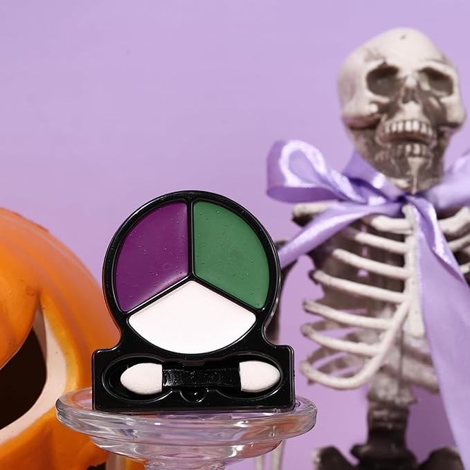 - 【White Green Purple – Poison Witch, Fairy & Fantasy FX】This oil-based cream facepaint set perfect for Halloween makeup fans recreating zombie, skull, clown, witch, and fantasy villain looks inspired by Beetlejuice, Ursula, Maleficent, spooky monsters, and more. Also works great as eyeblack under the eyes for baseball, softball, football, lacrosse, and team spirit or school event face painting. Includes a dual sponge tip for easy, mess-free application—perfect for beginners or quick Halloween touch-ups.