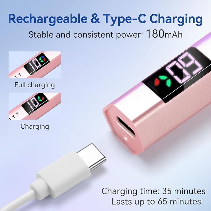 - Rechargeable with LCD Display: Equipped with a built-in rechargeable battery and convenient USB charging cable, this nail lamp offers up to 65 minutes of use after a quick 35-minute charge. The LCD screen clearly displays countdown time and power level, helping you track mode changes easily and confidently.