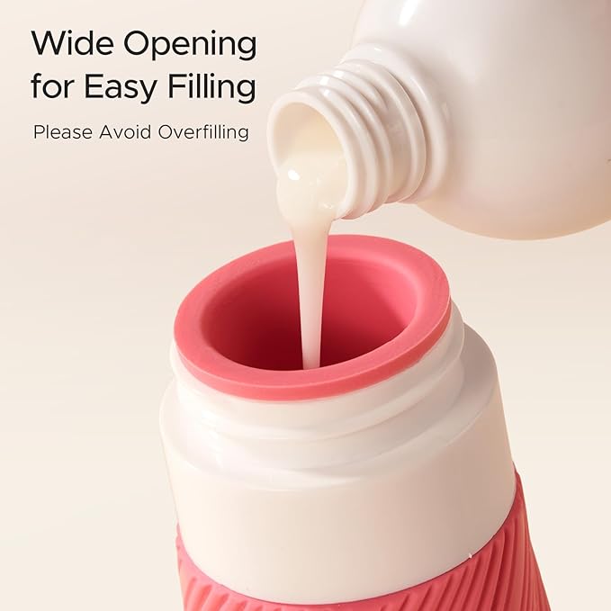 - Easy Fill, Easy Clean, Zero Waste: Travel size containers with wide mouths make it easy to pour, refill, or scoop even thick creams. Clean thoroughly with the included brush. Squeezable and soft silicone travel bottles for toiletries help you use every last drop without waste