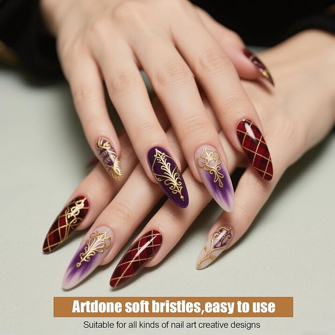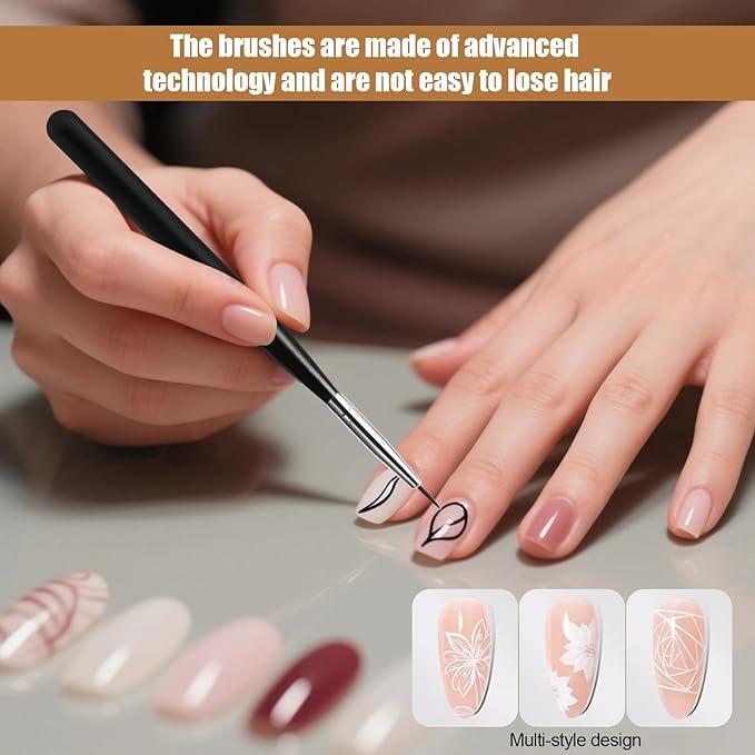 - FEATURES:The variety of brush sizes is good for nail art design, helping you create beautiful nail patterns in seconds. Ideal for drawing thin fine lines, painting flowers and pattern design on nail tips. Great for small details, filling in colors, marbling, swirling, blending, short strokes, etc