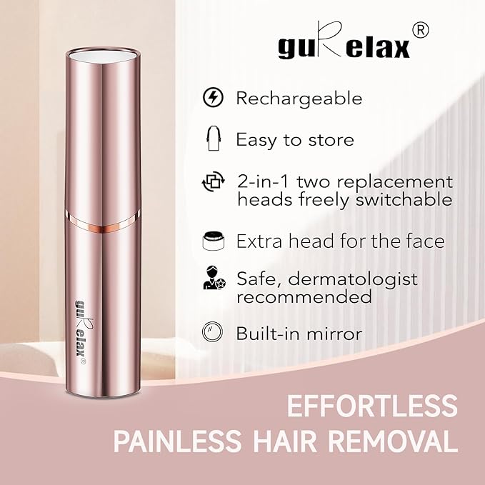 - 【With LED Light, Easy to Clean】This ladies facial hair removal device comes with the full-circle LED light. Use the brush can to quickly and easily remove hair. IPX6 waterproof and detachable blade head can be cleaned under running water. You’re going to love the amazing skincare & beauty results you achieve with guRelax facial hair remover.
