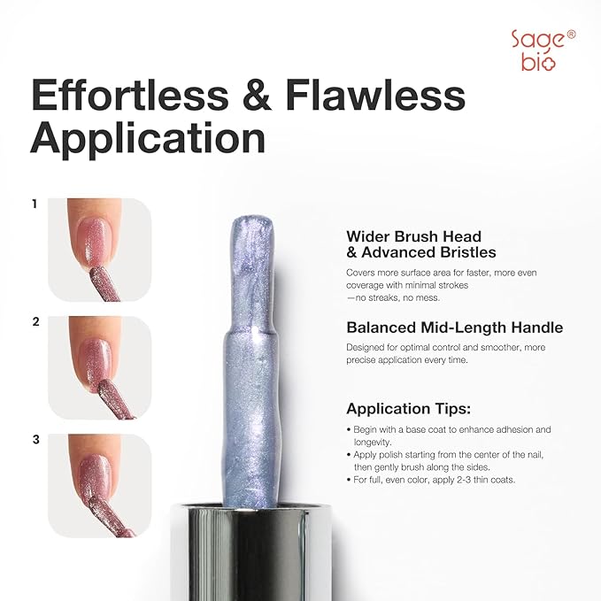 - Single Bottle, Salon Size: Includes one 15ml/0.5oz bottle of SAGEBIO Cat Eye Gel Polish. Use with magnet and different base colors to create unique shimmering nail effects. Customize your style from soft to bold.
