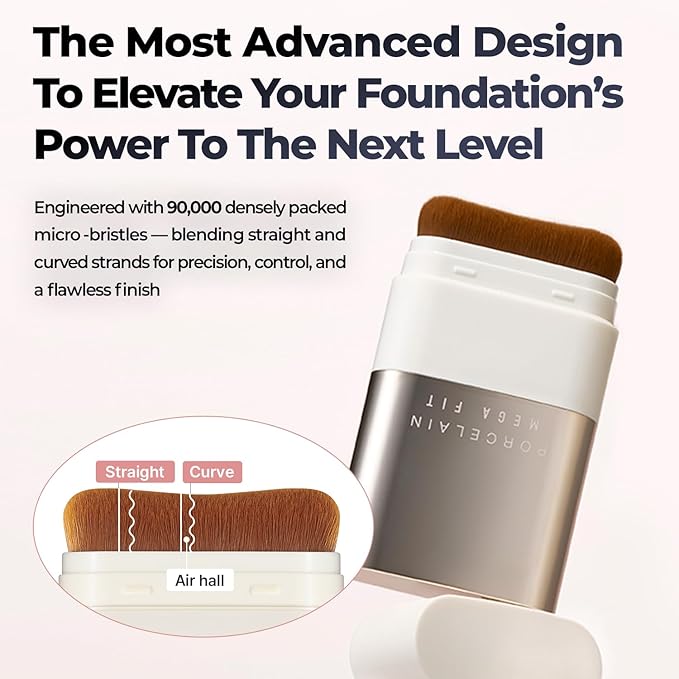 Mega Fit Stick Foundation with Built-in Brush-Full Coverage Creamy Formula for Porcelain Skin Finish, Hydrating&Long Lasting, Master Porcelain, Shade 19-21,0.56 oz (00C Fair)