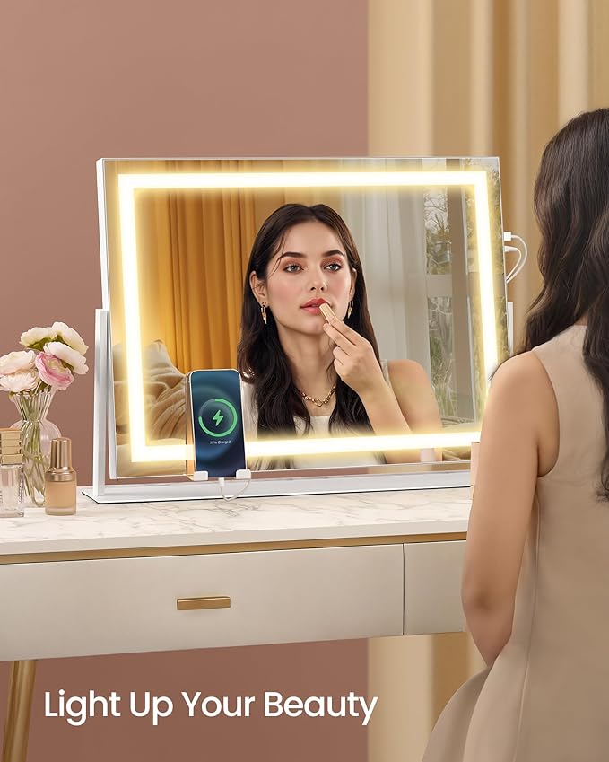 - Effortless Video Streaming and Charging: With a phone holder that can be attached on either side, you can easily watch videos on most smartphones and tablets while doing your makeup. 1 USB-A and 1 USB-C port power up your devices throughout your routine