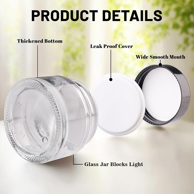 - 2oz glass jars with lids, ideal for travel containers, lip balm containers, sample containers, lotion container, candle jars