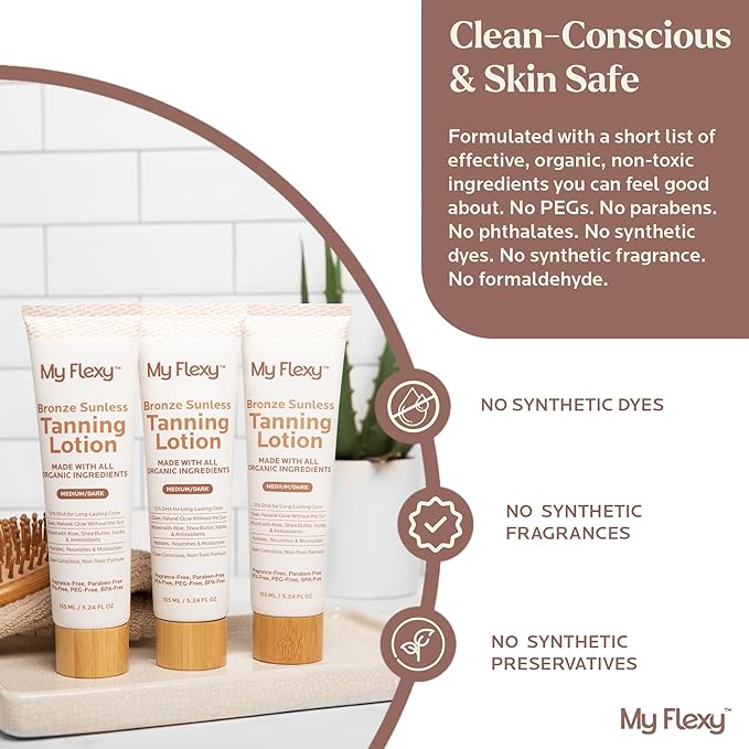 - Clean Glow, No Compromise – Achieve a radiant, sun-kissed Bronze glow without harmful chemicals. Our sunless tanner is made with all organic ingredients and naturally derived DHA + Erythrulose for an even, long-lasting tan. A natural no orange tint.