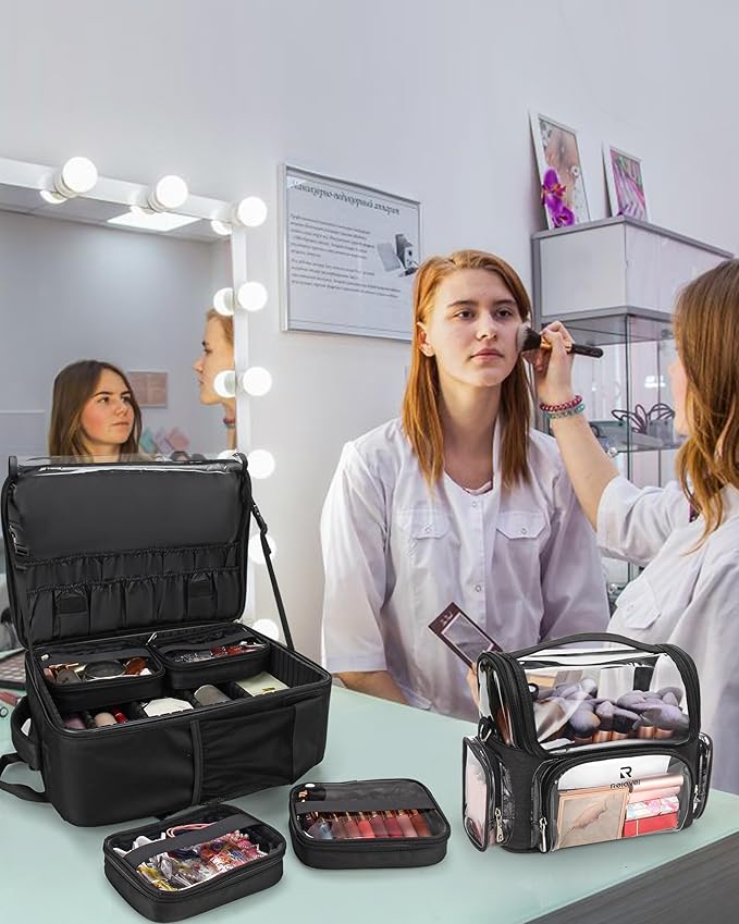 - EASY TO CARRY: This travel makeup backpack is designed with breathable and adjustable double shoulder straps and sturdy handle. The back sponge pad can effectively reduce the back pressure, and the back luggage strip can be fixed on the trolley case, It can also be used to store shoulder straps, Very suitable for makeup artists to carry out. Is the best choice for makeup artists.