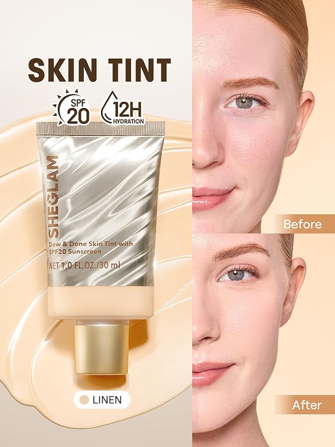 SHEGLAM Dew & Done Skin Tint with SPF20 Light-medium Coverage Foundation Evens Skin Tone-Linen