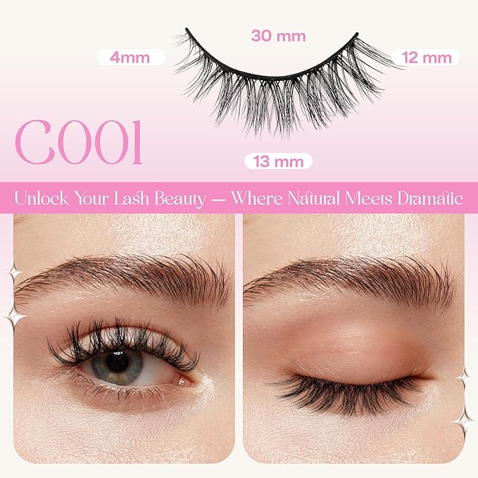 CALAILIS Self Adhesive Eyelashes 5 Pairs Natural Look Press On Lashes No Glue Need Eyelashes Reusable Cat Eye Wispy Self-adhesive False Lashes with Replacement Adhesive Strips (C001)