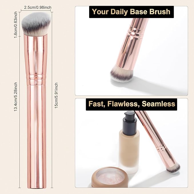 START MAKERS Foundation Concealer Brush, Angled Professional Contour Makeup Brush Soft Dense for Liquid Cream Powder Makeup, Flawless Blending & Coverage, Champagne Gold