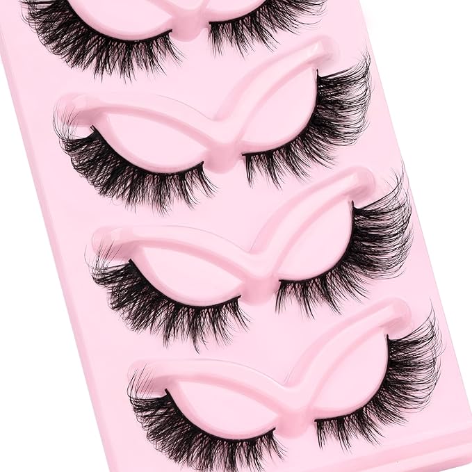Veleasha Cat Eye Lashes Fluffy Fox Eye Lashes Natural Crisscorss False Eyelashes Faux Mink Lashes Wispy & Lightweight C Curl Lashes 5 Pairs Pack (Fluffpurr)