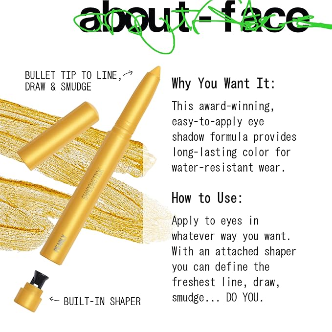 about-face Shadowstick – Long-Wear Cream Eyeshadow Stick – Matte & Pearly Finishes – Vegan, Cruelty-Free, Clean Beauty – 0.049 oz (Chaos Theory- Pearly Pollen)