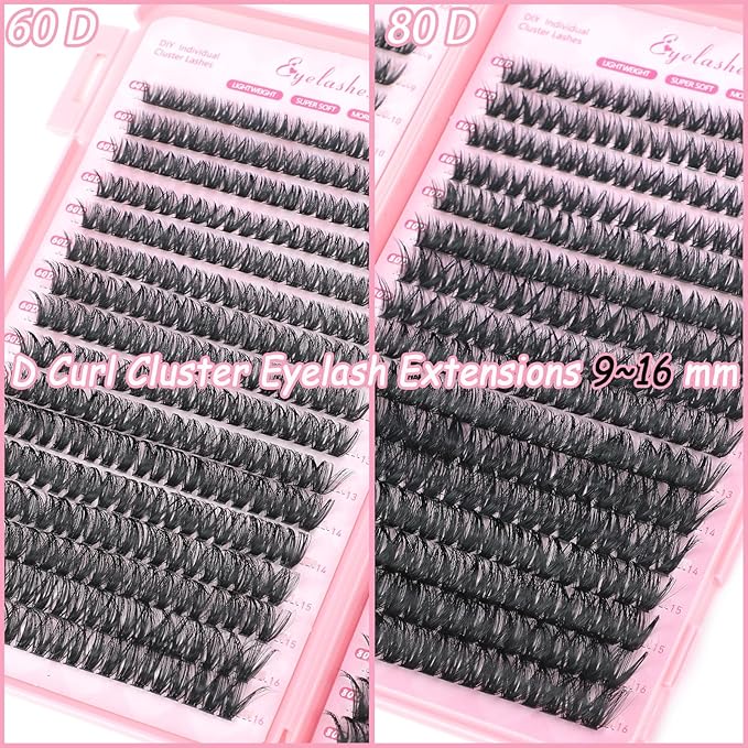 Manga Lash Clusters, 640 Pcs Eyelashes Clusters Extensions 9-16mm Individual Lashes D Curl Fluffy Wispy False Eyelashes Thin Band (60D&80D)
