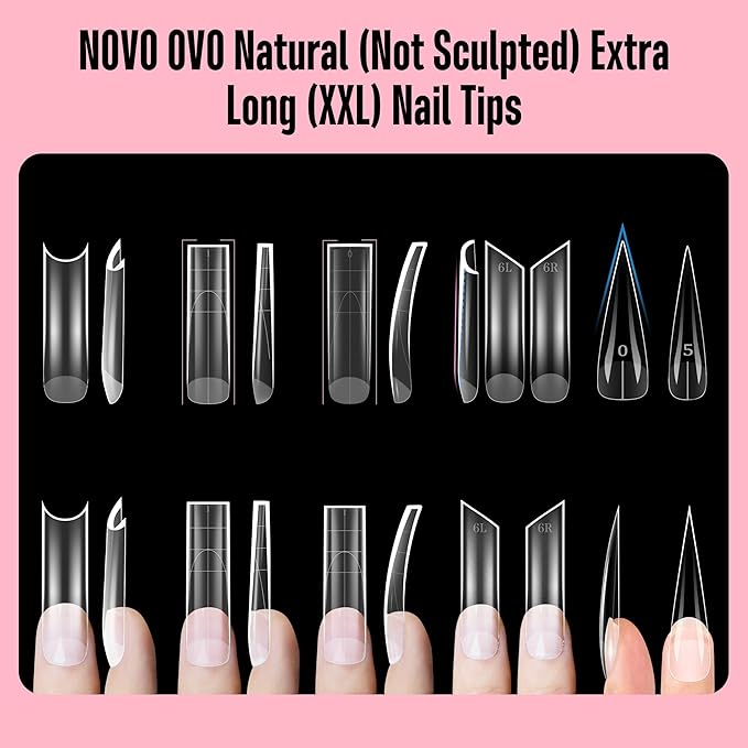 NOVO OVO Halloween XXL Square Nail Tips with Sharp Point & Moon Curve, Extra Thick False Nails Press on, matte Full Cover Soft Gel Extension French Tips Fake Nail Acrylic kit for DIY X 15 Size 180pcs