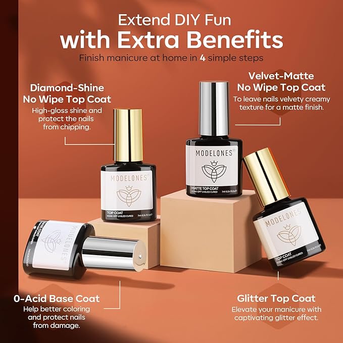 - Upgraded Gel Nail Formula: Modelones gel polish boasts an upgraded formula crafted with natural ingredients to care for your nails. You can indulge in your nail art without damaging your nails. With a proper application, 28 days of wearing is attainable