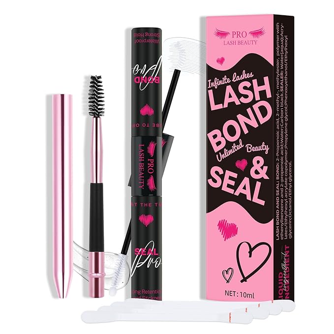 PROLASHBEAUTY Lash Bond and Seal Cluster Lash Glue & Seal Waterproof Bond and Seal Cluster Lash Glue for DIY Eyelash Extensions Waterproof Strong Hold (5ml+5ml, Clear Bond & Clear Seal)