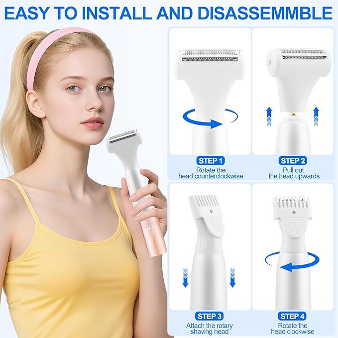- 💧【Waterproof & LCD Display】Designed with IPX7 waterproof technology, this Electric Razor for Women supports both wet and dry use. The detachable shaver head makes cleaning effortless, while the LCD display tracks battery life. Ideal as a Body Shaver, Electric Bikini Trimmer, or Hair Trimmer for everyday use.