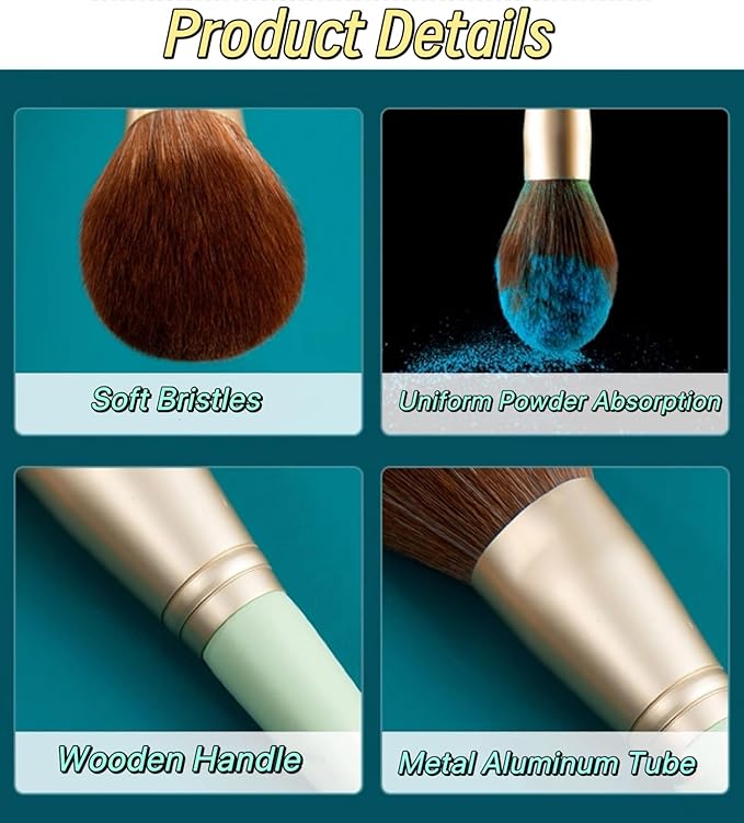 - [Soft & Dense Synthetic Bristles]: Crafted with premium wooden handles and aluminum tubes for lasting performance. The bristles pick up powder easily for smooth application, even on sensitive skin.