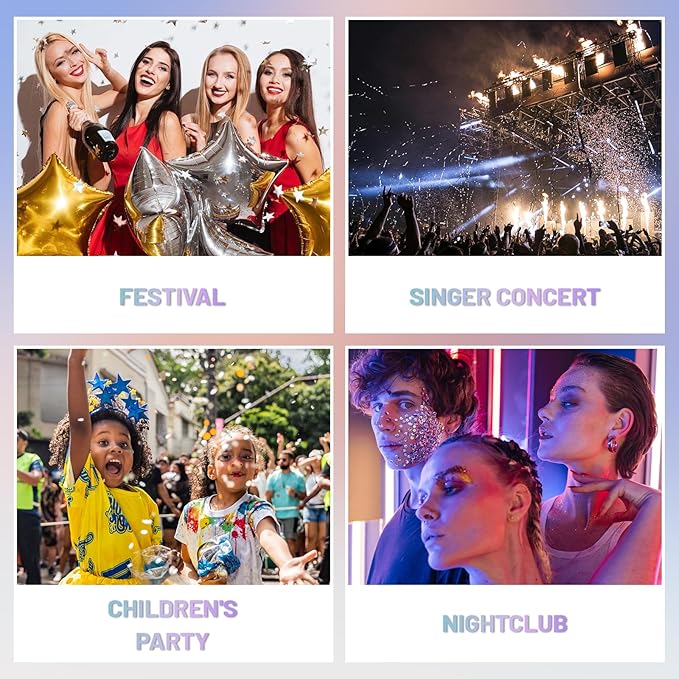 - Laser Flash Powder:This colorful face glitter is made from holographic glitter, the glitter is lightweight and durable, designed in an easy to use tube with a large 50ml capacity. The color and shine of the laser glitter changes with the viewing angle, just like the brilliant colors of the rainbow, making you stand out from the crowd.