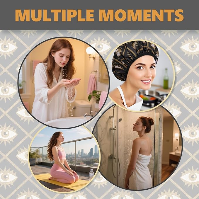 - Double Waterproof Shield: Luxury double-layered polyester cotton repels water like magic! Color-lock tech ensures vivid, reusable shower cap vibrancy wash after wash