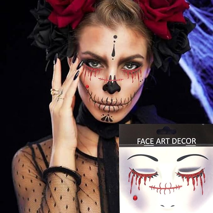 - Dual Holiday Appeal: Our Halloween Face Gems Tattoos are perfect for both Halloween and Day of the Dead celebrations. The temporary skull designs add a spooky yet artistic touch to your face and body art.