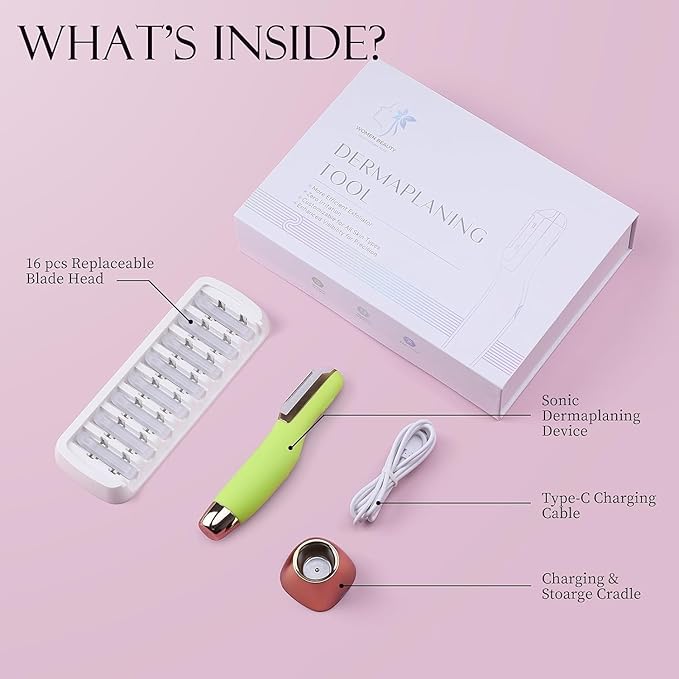 Sonic Dermaplane Razor for Women Face, Dermaplaning Tool for Face, Sonic Edge Technology, Facial Hair Removal for Women, Peach Fuzz with 8 Replaceable Blades(Green)