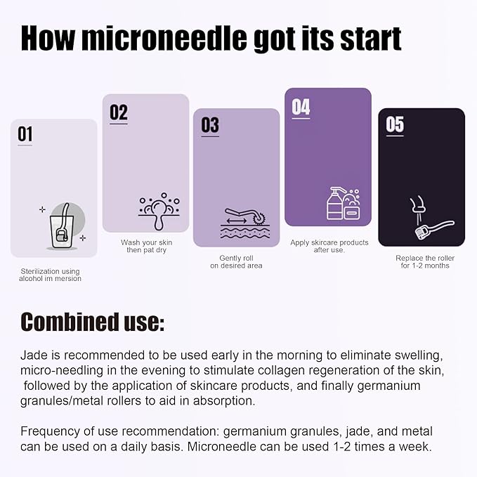 - 3 Replaceable Heads: This beauty roller has 3 replaceable heads. The natural and cool jade stone can reduce redness, improve fine lines and tighten pores. The stainless steel head is durable and shock-resistant. It feels cooler to the touch and can quickly reduce edema. The 0.25mm microneedle needle briefly opens up the skin passage, enhancing the absorption of skin care products.