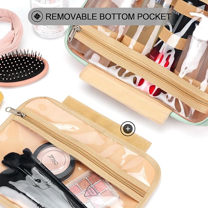- EASY TO USE - When it is open and hanging, all the transparent pockets inside will be lined up in front of you, you can quickly take out the items you need without making a mess inside. The bottom bag is detachable, you can remove it if it’s too long for you and use it as a separate bag. The trolley strap on the back can fix on the trolley case, you also can put it in the suitcase to free your hands.