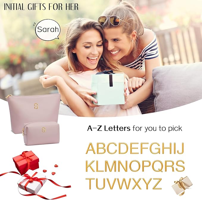 - Personalized Monogram Style: Add a chic, personal touch to your routine with this sleek makeup bag set, featuring a stylish metal initial for a delicate, customized look