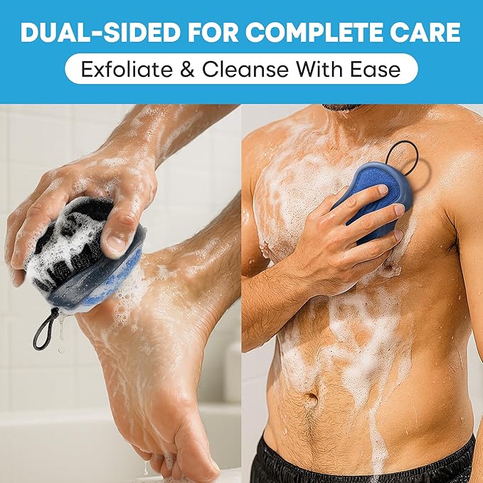 - READY FOR HOME, GYM & TRAVEL SHOWERS: Compact, durable, and hygienic—this rubber body scrubber, mens exfoliating body scrubber, or body brush exfoliator is your go-to wherever you are. Use it as a shower sponges for men, body scrubber for women, or shower loofah men on the road. A smarter option than outdated body loofah for men, designed to meet modern hygiene needs. The perfect travel body scrubber, body washer, or shower wash scrubber for quick, effective hygiene on the go.
